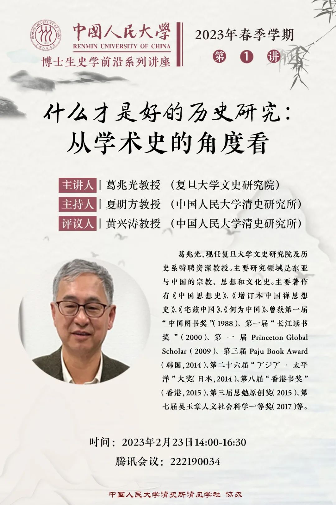 【史学前沿 第1讲 预告】葛兆光:什么才是好的历史研究——从学术史的角度看