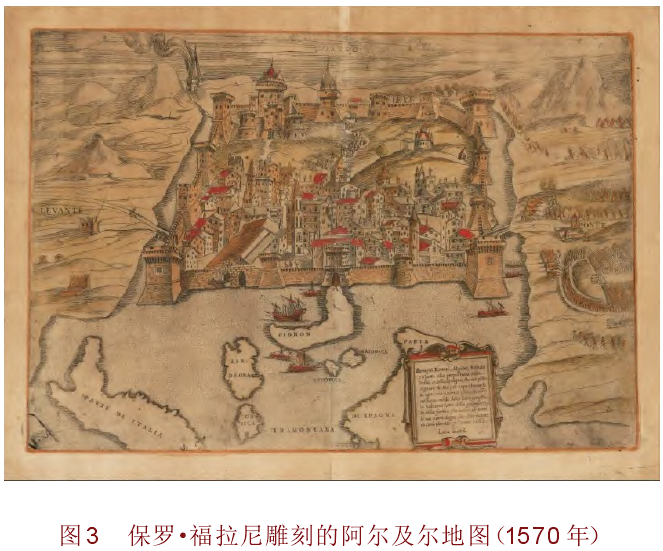 而在很多场合,并非一定要绘制带有固定比例尺的经纬度坐标地图,如《地图学史》中指出:在16世纪的英格兰,“最早的地图和平面图主要是图画式和自然风格的,尽管比例尺不确定……它们故意夸大易受攻击地区,比如海滩的大小,而那些相对坚固的地区,比如悬崖,则相对减损。而具有战略重要性的人造标志,如灯塔和教堂塔楼(经常被用作灯塔)以及军队征税和战马饮水食料的停留点,则表示得很大,而其它重要性较低的建筑则相对较小。而那些平坦的地区,比如埃塞克斯(Essex)和萨福克(Suffolk),几乎向任何一个方向的入侵开放,在这些地区,人们努力地描述更远的内陆城镇,比如伊普斯维奇(Ipswich),这将提供第一重坚固防线。这些地图中最早的一批几乎立刻被标注出来,以显示新的堡垒应该建造之处,并对建筑工程的进展进行评述,也可能当时没标注上,后来又添加上了”。16世纪的制图师保罗·福拉尼(Paolo Forlani)在关于围攻阿尔及尔的地图上向其读者谈到:“我尊重意大利与西班牙相对峙的标记为A的桥梁的比例关系,但是为了真实地向您展示地理形势的所有细节,我以您所看到的(夸张的)尺寸和形式予以呈现”(见图3)。