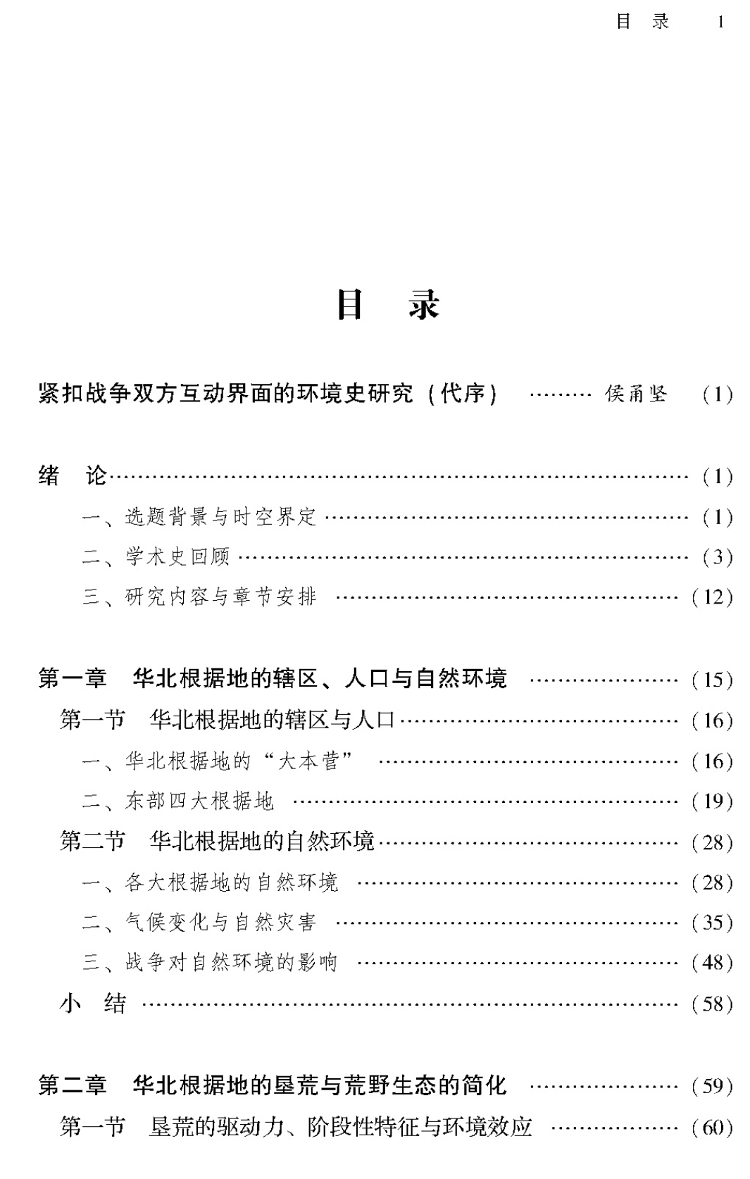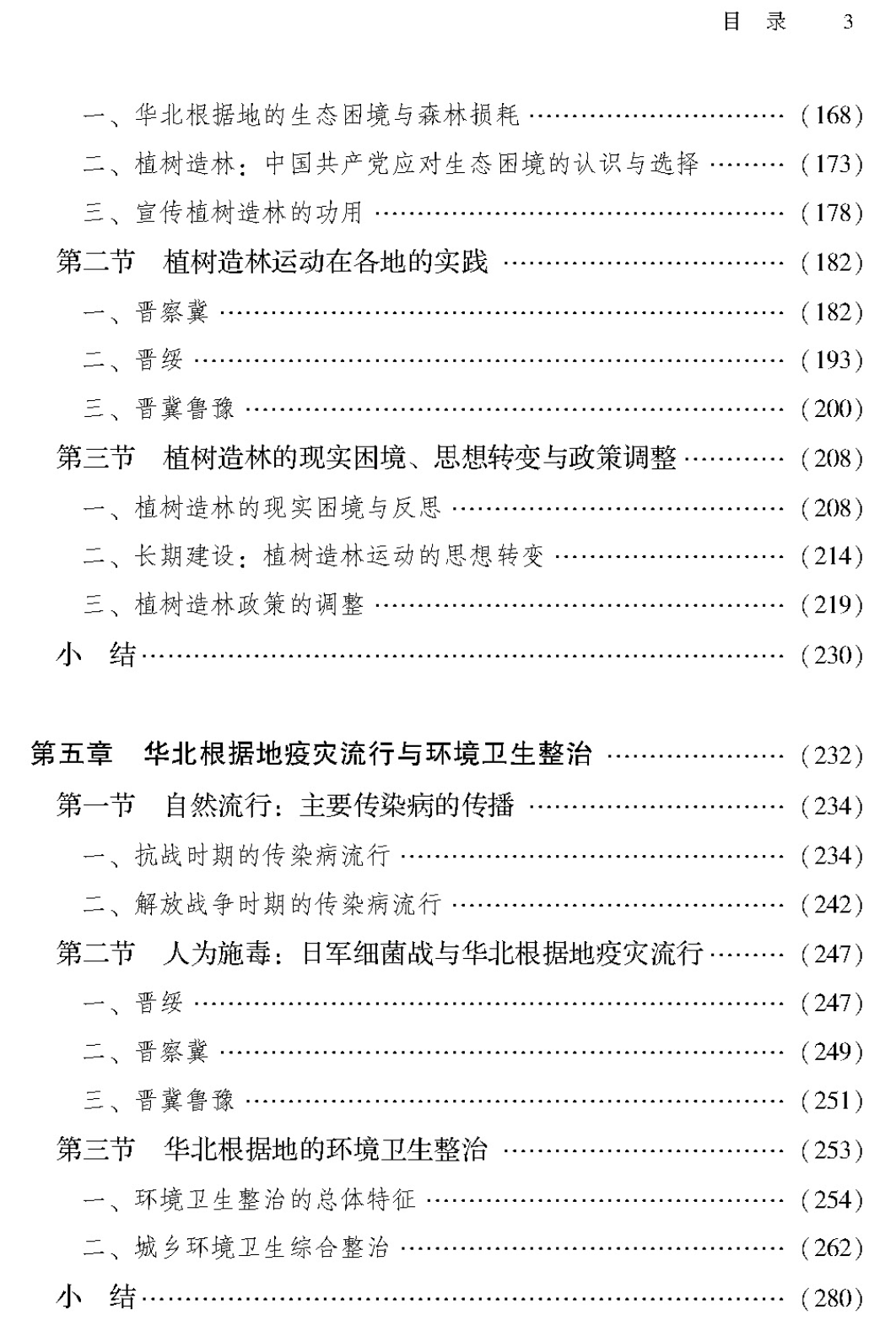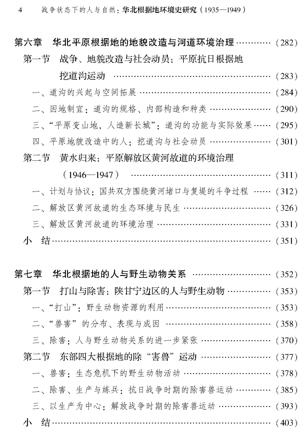 本书以中国共产党建立的华北根据地为探讨范围,包括陕甘宁边区、冀鲁豫、晋绥、山东等根据地为空间,涵盖抗日战争、解放战争这十多年的时间,重点关注了党领导根据地军民在战争背景下对自然和社会环境的改造情况、与自然抗争情况,诸如改造地貌环境抗战打击敌寇、改善自然环境减缓水土流失、改善人居环境保持生态平衡、改善城乡环境保障群众健康等,进而认为党在根据地的这些举措和实践为新中国成立后党在社会主义建设方面政策措施的出台提供了经验,也成为中国共产党生态环境理念的重要思想源泉。
