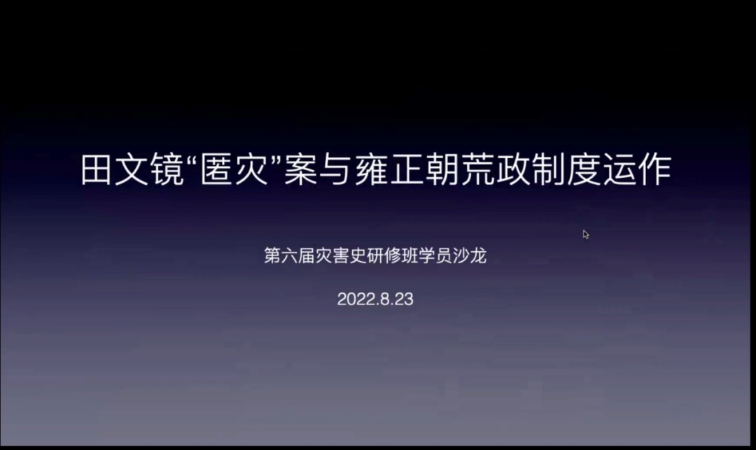 第一部分为问题缘起,刘老师对学术界关于田文镜“匿灾”的三种原因做了整理,并提出需要探讨田文镜“匿灾”背后的深层原因。第二部分是对“模范督抚”的二重属性:“报祥瑞”和“报灾荒”的讨论。第三部分是关于信息不对的成因:“成灾”和“勘不成灾”的分析。第四部分是对救灾标准背后的考量:“宽仁”和“严猛”的思索。第五部分是遭遇弹劾后续及余波:“失察”和“匿灾”的研究。最后是所得出的结论。