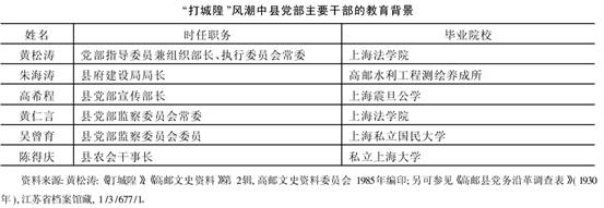 69、黄松涛:《打城隍》,《高邮文史资料》第2辑,第44—45页。一般而言,当地方基层发生党政纠纷时,国民党中央或是省级党部多半会劝诫基层党部收敛其激进行动,也会告诫其应避免干涉地方行政。换言之,既不给予党务上的支持,也不在基层建立“以党治政”的法理制度。参见王奇生《党政关系:国民党党治在地方层级的运作(1927—1937)》,《中国社会科学》2001年第3期,第196页。