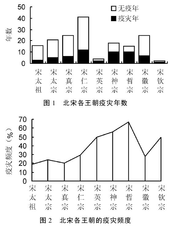 宋徽宗在位(1101-1125年) 25年,疫灾之年有7个(1101年、1107年、1108年、1109年、1113年、1116年、1120年),疫灾频度为28·0%。