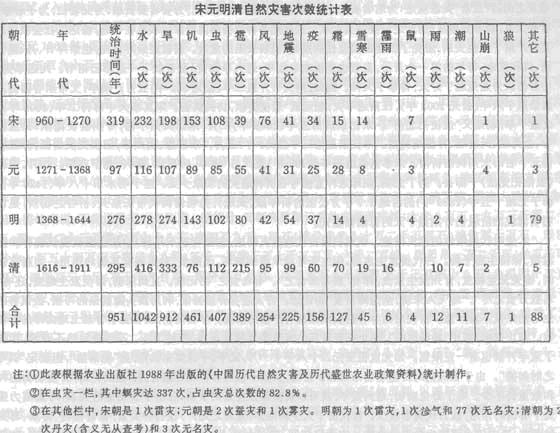 我国是个以农立国的文明古国,又是一个版图辽阔、自然条件复杂的泱泱大国。有着悠久历史的农业,是自然再生产与社会再生产的交织体。且首先是自然再生产,对自然有很大的依附性。常言道:“风调雨顺,国泰民安。”若灾害频繁,则民不聊生,国无宁日。自然灾害是对农业生产的严重威胁,它轻则使农业歉收,重则无收,甚至给人们生命财产造成巨大损失。研究我国古代自然灾害史,不仅能熟悉历史,更重要的是能启迪我们树立“天人合一”思想,协调人与自然的关系,制定适合国情的农业政策和抗灾避灾措施。本文仅就我国古代自然灾害的种类、特点和救荒策作一初浅概说。 一、远古时期至春秋战国:从洪水猛兽传说到五种灾情的提出 我国远古时期的自然灾害,无文字史料可查,历来只凭一些传说。解放后,考古工作者发掘的遗物和化石提供了一些分析考据的资料,但毕竟难以尽然。相传,在北京猿人时期,大地上生长着树林、灌木和丰盛的野草。虎、豹、狼、熊等野兽出没于森林和山野中。那里还有大象、犀牛和梅花鹿等。原始人用木棒和石器同野兽作斗争,过着狩猎生活。开始吃生肉和野果。后来发明了火,就把食物烤熟来吃。慢慢地又学会了把捕来的鸟兽驯化饲养,变成了家禽家畜。开始有了畜牧业。以后又学会了把野生植物栽培变成庄稼,因而有了种植业。种植业搞起来了,于是就存在一个同水旱等自然灾害作斗争的问题。“大禹治水”就是我国流传最广的故事:相传在五千年以前,尧在位时,黄河流域“天下犹未平,洪水横流,泛滥于天下,草木畅茂,禽兽繁殖,五谷不登,禽兽伤人,兽蹄鸟迹之道交于中国”(“《孟子•滕文公上》)。面对严重的水灾,尧即召开部落联盟会议,商量治水对策。四方部落首领首推鲧去治水。鲧花了九年时间也没能制服洪水。原来他的治水方法不对头,只知“水来土掩,造堤筑坝”,结果洪水冲塌堤坝,水灾反而越闹越凶了。舜接替尧当部落首领以后,亲自到治水的地方去视察,发现鲧办事不力,治水无方,即将其治罪处死,并命鲧的儿子禹去治水。禹接受了父亲的教训,采取开渠排水,疏通河道的办法,带领群众,经过十三年的艰苦奋战,终于把洪水引入大海。在十三年的漫长岁月里,禹三过家门而不入。当时,黄河中游有一座龙门山,堵塞了河水的去路,把河水挤得十分狭窄。奔腾东下的河水受到龙门山的阻挡,常常溢出河道,酿成水灾。禹亲自到实地察看地形,便带领人们将龙门山开凿了一个大口子。使河水畅通无阻。禹由于治水有功劳,后被推选为部落联盟首领。 夏代以后,农业上大规模垦殖,人们伐木、烧山、驱赶野兽。周朝以后,人们砍伐森林开垦农田,烧炭,建房。驱赶野兽,放牧,甚至为战争而毁林。由于森林的减少,干旱现象也就日趋严重。故到了春秋战国时期,农业生产中的主要灾害不是洪水内涝,而是干旱。以排除积水为其功能的我国古代沟洫,不能不为灌渠的兴起所取代。当时,干旱的秦国,沟洫无水可排,也无水可蓄,商鞅就干脆把它废除了。代之而起的是灌溉渠道。战国时期,著名的灌溉渠道工程有期思——雩娄灌区、都江堰、郑国渠等十多处。都江堰,灌溉成都平原万顷田。郑国渠(今陕西关中)可灌溉泽卤之地四万余顷。 远古时期至周朝以前的自然灾害大致有以下几个特点: 1.由于人类刚刚由原始猎狩生活转为畜牧、农耕生活,大自然还基本上保持原有的现状,原始植被遍地,森林茂密,野草丛生,野兽成群出没。那时,又正值地质史上最近一次冰河期的结束。大地回暖,气候湿润,地形复杂,江河无水路,百川无堤防,沼泽无障碍,故遇暴雨,洪水横流,泛滥成灾。“大禹治水”传说实际上是人类在一个相当长的历史时期与洪水作斗争的缩影。 2.极为简单的农业活动对灾害缺乏敏感性。饲养业是刚刚处于将野兽驯化为家畜的阶段;种植业上刚刚将野生的狗尾草培植为粟,将野菜培植为蔬菜,野果培植为家果这样一个漫长的过渡时期。籽入土而待收。多种少收,或有种无收。作物对水分要求不严格,对其他自然灾害更不敏感。所以,一般传说。也仅有洪水灾害的体验。 3.即使发生了自然灾害也无史料可查。因为文字还处在“甲骨文”时期和汉字成形时期,语言还没有规范化,人的思维能力还极有限,不可能有什么文字记载。因此,即使发生了各种自然灾害,人类也是朦昧无知,无所认识。仅有对“洪水”和“猛兽”的直观认识而已。 到了春秋战国时期,管仲所著《管子》一书,其中《度地》篇中已提到水、旱、风雾雹霜、疠(疫病)、虫等害,说明先民们已突破对洪水猛兽的传说,而开始对五种灾害有了初步认识。这是灾害学上一个起点碑。 二、两汉、新莽、魏晋、南北朝:旱、水、虫、饥、雹、风、疫、地震八灾搔扰 我国的两汉时期,即公元前206年至公元220年,历时426年。这期间有一个王莽篡政的l5年(公元8—23年)。此后是60年的三国鼎立时期(公元220—280年)、155年的两晋时期(公元265—420年)和历时161年的南北朝大分裂时期。这段漫长的历史时期,我国农业不断地向前发展。汉朝统治阶级非常重视农业。汉朝代的经济是以土地为基础。国家向农民提供一定面积的土地。官僚贵族占有较多的赐地,通常由农民耕种,再从农民那里按收成的比例征收土地税(实物地租)。由于人口增长(当时人口已到5900多万),加之官僚机构庞大,连年战争。政府